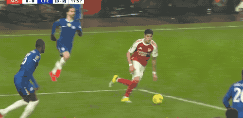 第34分钟,加布里埃尔的长传制造威胁,马丁内利的停球有些靠后,这也影响了接下来的动作。在古斯托的干扰下,马丁内利的射门如同强弩之末,没有任何威胁。